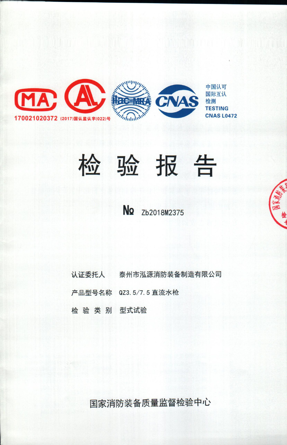 啟真法蘭消防信號閘閥ZSXZF4-Q檢驗報告